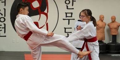 The advanced kids class is meant to utilize skills learned from the intermediate class in a more intensive and full-bodied way. Students learn to master the teachings and ideals of Han Mu Do in preparation for reaching their black belt goals.